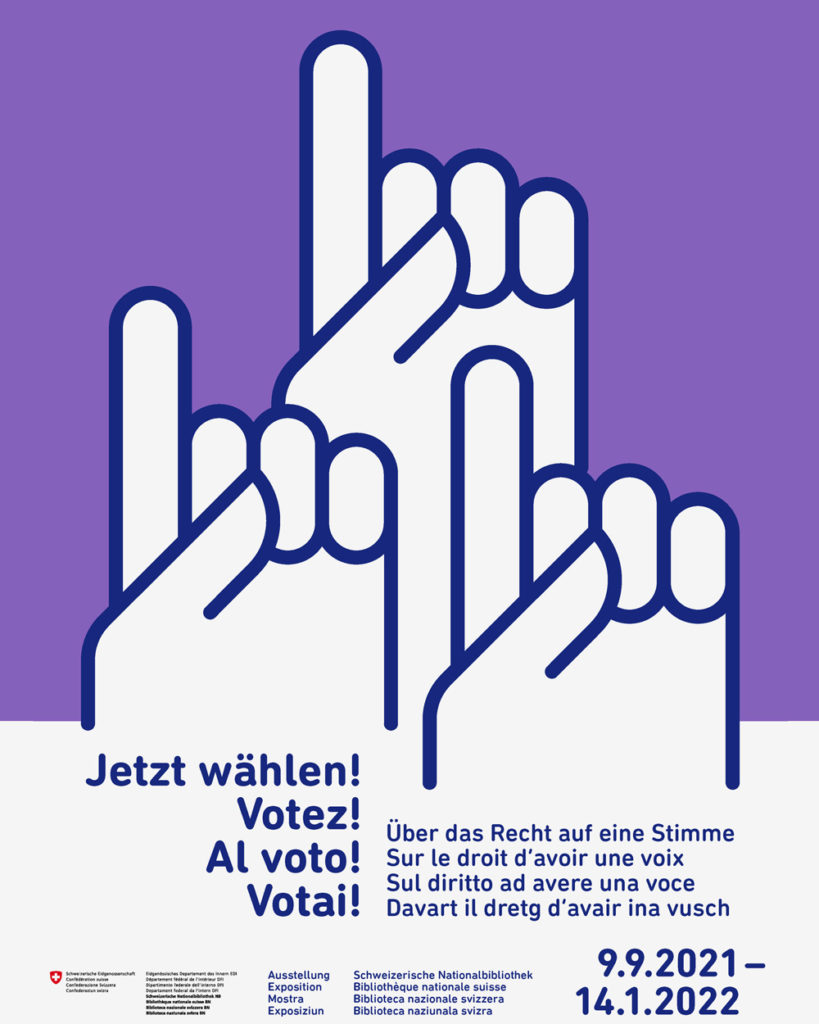 Die Ausstellung Jetzt wählen! Über das Recht auf eine Stimme der Schweizerischen Nationalbibliothek fragt nach der politischen und kulturellen Teilhabe in der Schweiz, Anlass dazu bietet die Rückschau auf 50 Jahre Frauenstimmrecht in der Schweiz.